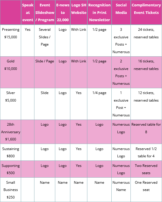 – Complimentary event tickets based on your sponsorship level.