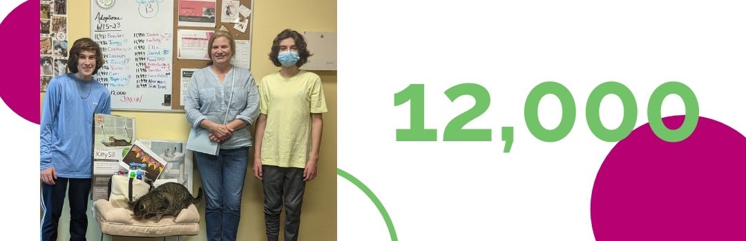 We just hit our 12,000th adoption! Jeannine and her wonderful family are first-time cat owners who were happy to give Jaxin a fur-ever home. Both sons fell in love with Jaxin and he with them. Congratulations! Read some more Happy Tails.