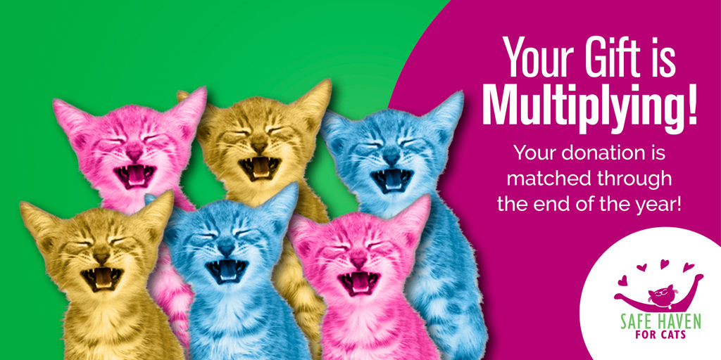 Now through the end of the year, your donation will be matched thanks to our generous leadership donors. Every dollar goes directly to saving the lives of cats in the Triangle. Our goal is to raise $280,000 before 2019. You can help. Donate today!